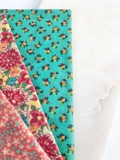 Reduce your single-use plastic easily with beeswax food wraps. Handmade with beeswax, organic jojoba oil, and pine resin.