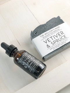 Vetiver & Spruce smells like a forest in winter, cold autumn mornings at the cottage, like your grandfather's aftershave, and honey on toast. Like all of The Willow's Bark fragrances, it is scented with 100% pure organic essential oils, which adapt and change with the oils already present in your skin, so that you don't just wear the scent, rather, it blends in with the one you already have.